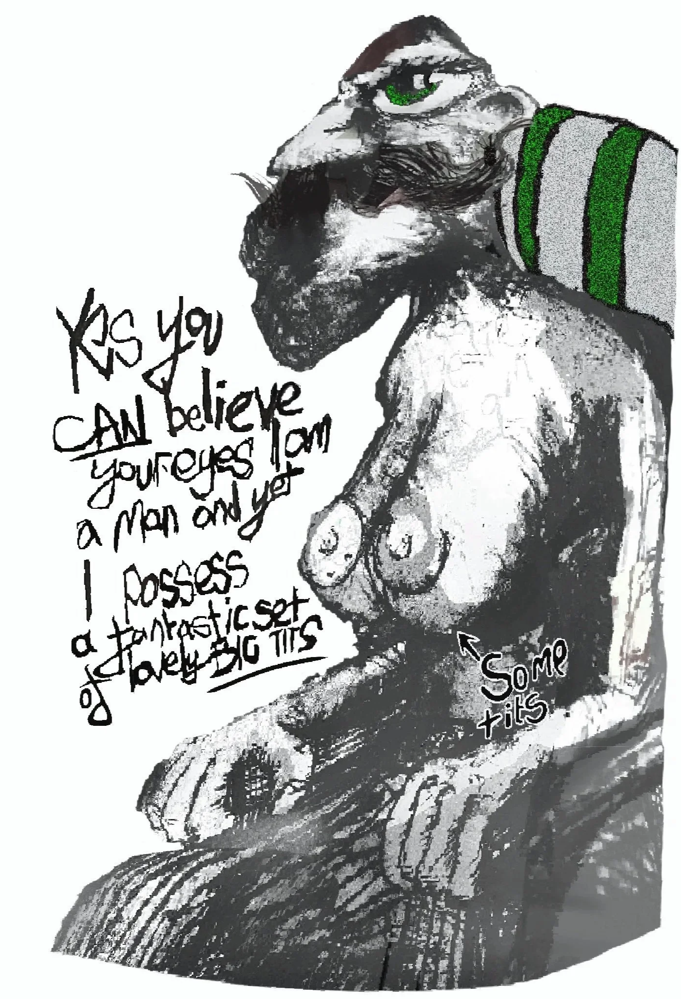 well groomed, no teeth, rarely speaks.