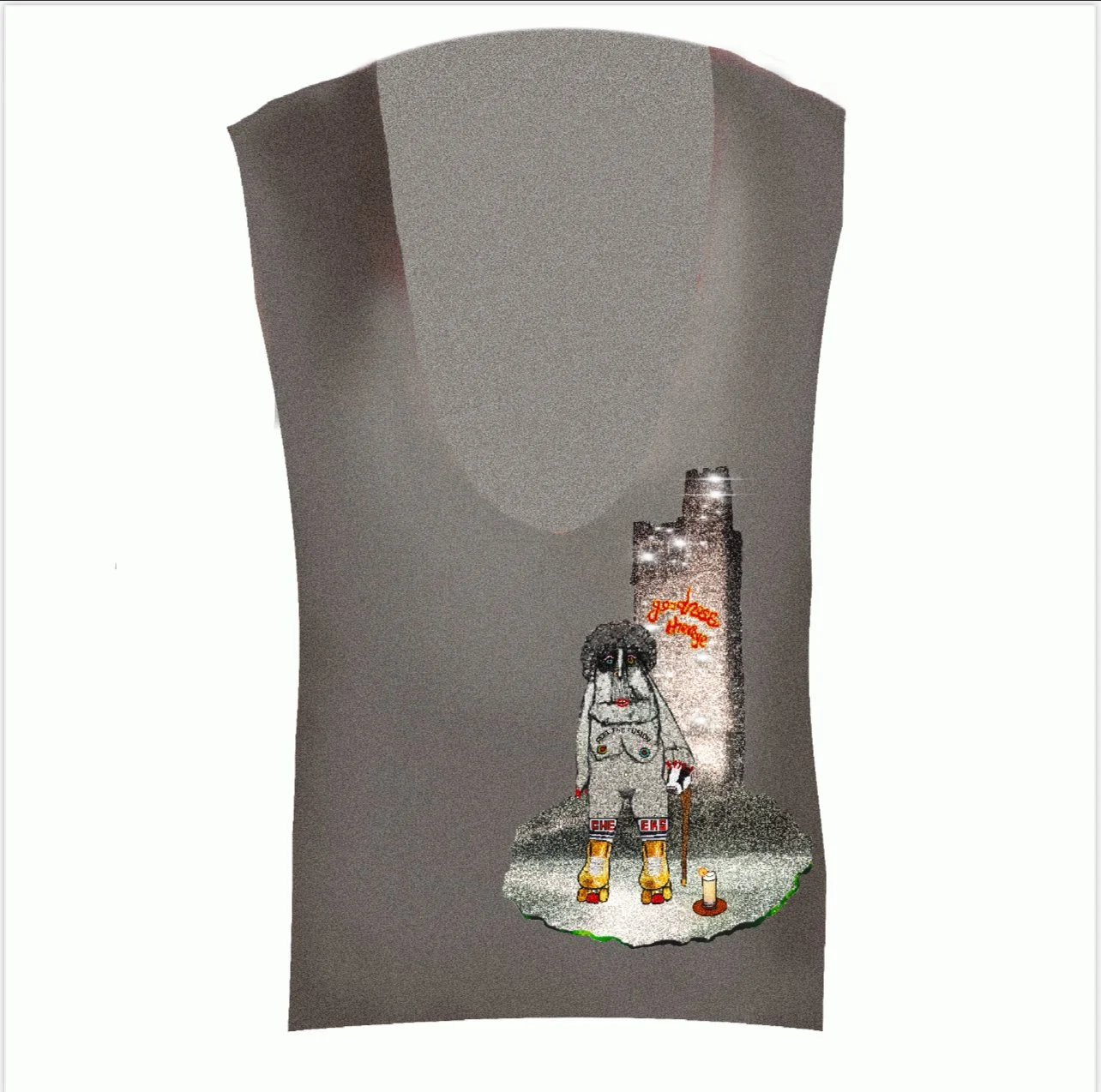 Sleeveless T-Shirt on Burgandy - 64 x 60 cm